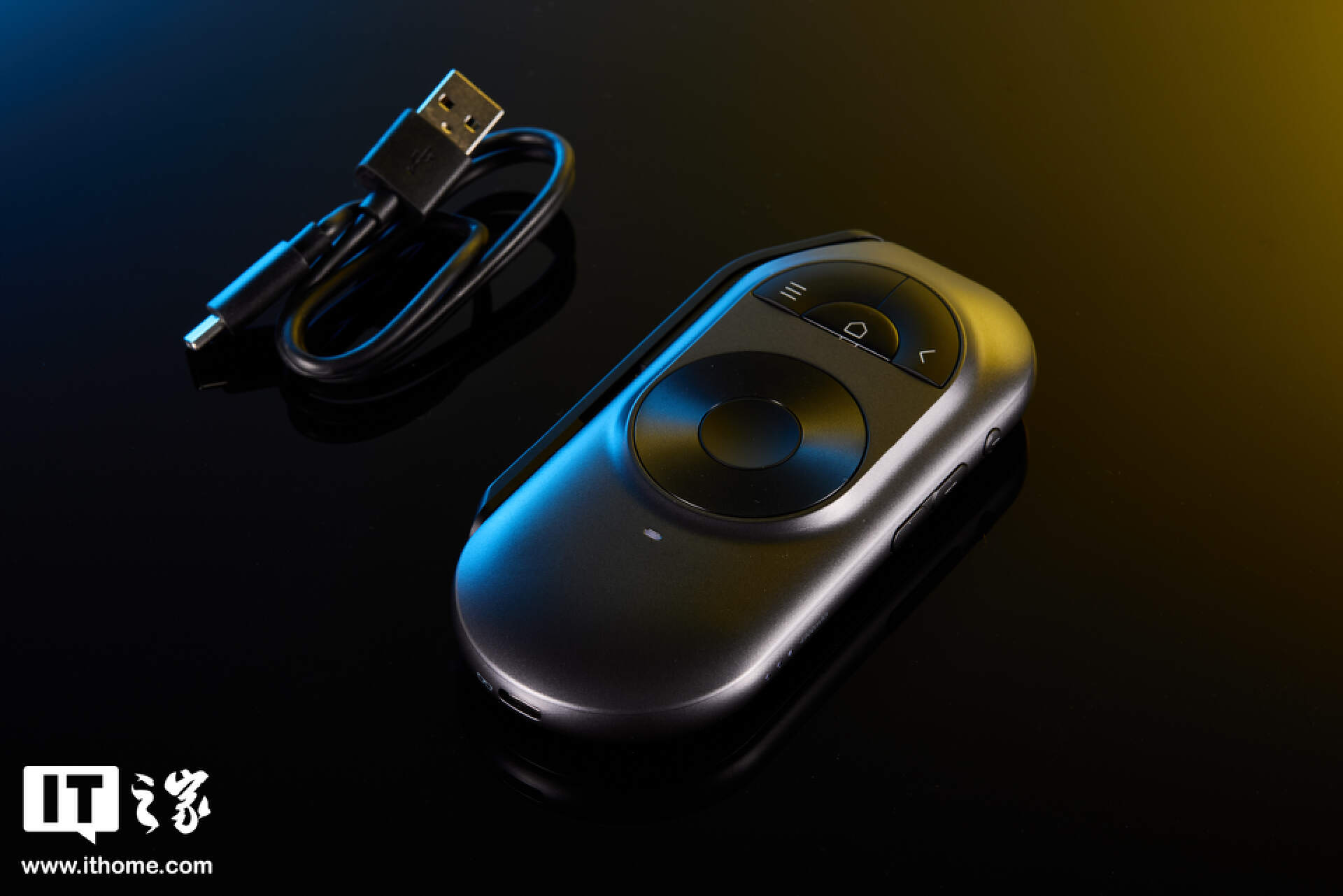 周边配件方面,雷鸟 Air 2s 魔盒像是一个缩小版的遥控器,机身上集成了两枚 C 口,分别用于充电和与眼镜连接。