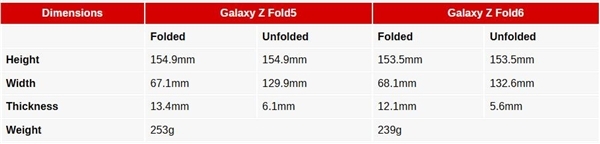 对比上代,Galaxy Z Fold6更加轻薄,展开状态下的厚度为5.6mm,重量为239g。