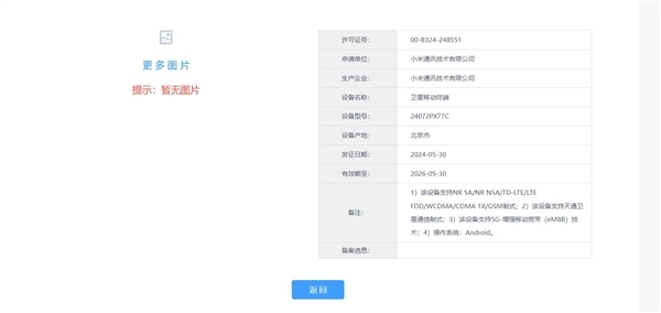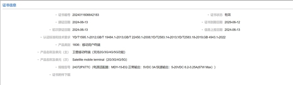 快科技6月14日消息,小米MIX Fold 4已获三证,其型号为24072PX77C,认证页面显示,这是一款卫星移动终端,意味着MIX Fold 4支持卫星通信,这是小米第一款支持卫星通信的折叠屏。