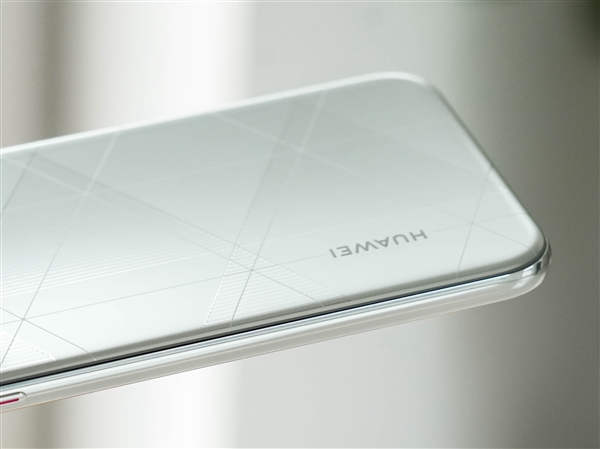 背板为玻璃材质,但预计是为了与其他机型区分开来,做了一些纹理设计。白色与银色的线条交汇成多个三角形,层叠交错在背板上,银色线条形成的三角形内又以直线等分印刻塑造纹理,官方称之为光织格纹,视觉上具有很强的层次感。