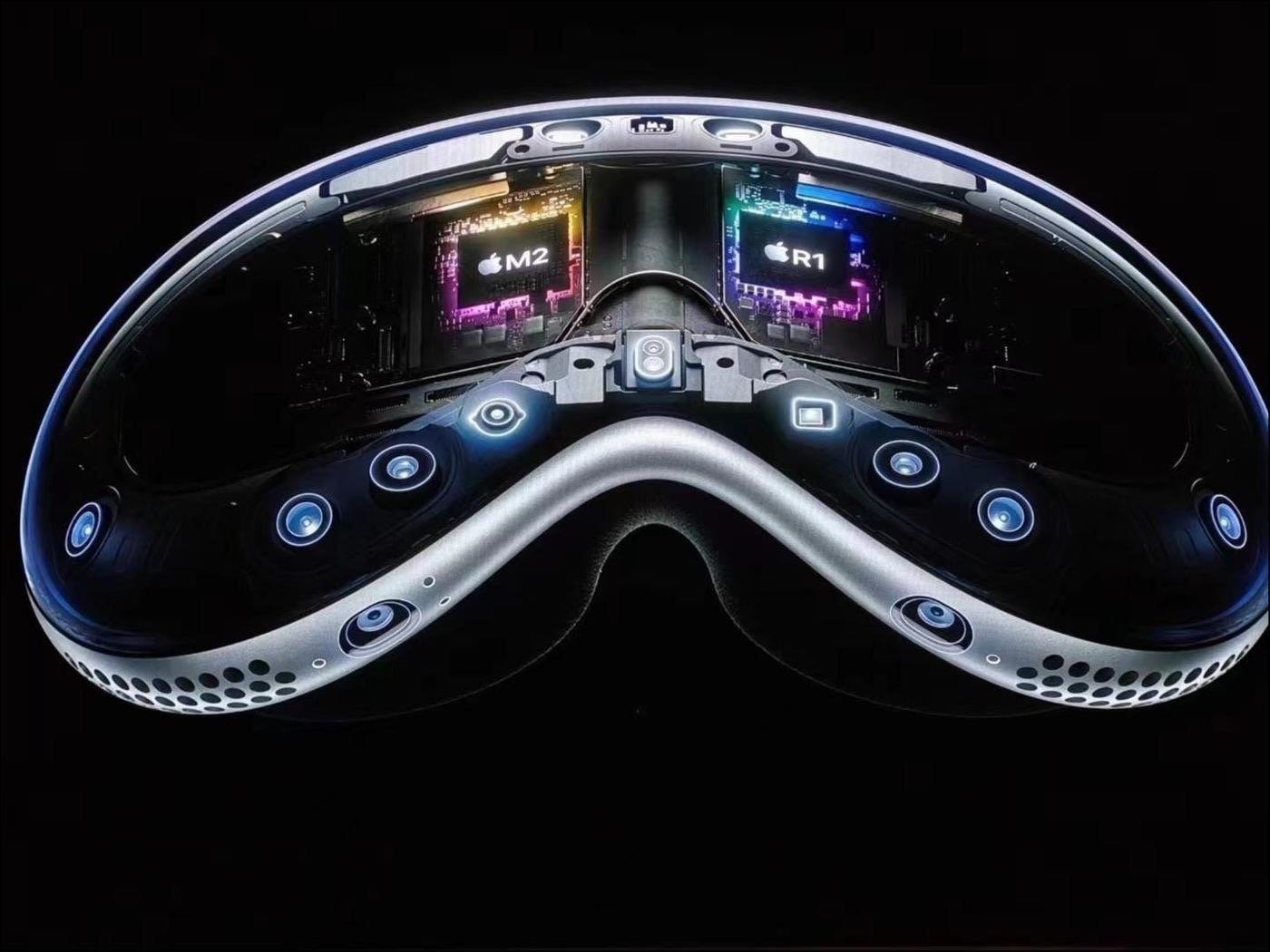 为了高效地计算和顺畅地运行,Apple Vision Pro搭载了两颗芯片,分别为M2芯片以及全新的R1芯片。其中,R1芯片主要负责传输,官方称传输数据12毫秒就可以触达。