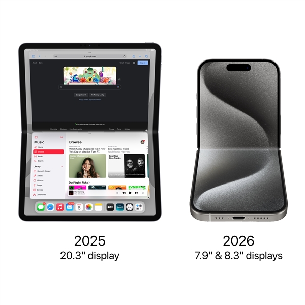 iPhone折叠屏将有7.9英寸和8.3英寸两种屏幕尺寸。