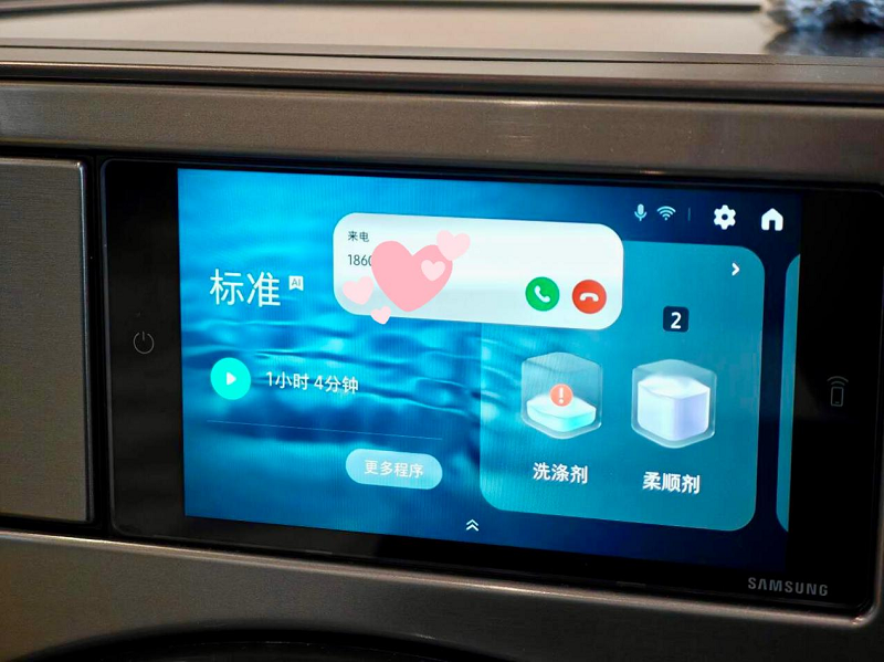 拥有大屏幕的AI洗烘组合更是现代智能家居的一个重要组成部分。它可以与手机联动接听电话,视频播放,上网冲浪等功能。想象一下,在做家务的同时,也不会错过任何一个重要的电话,还能在洗/烘衣物期间畅游网络。这种智能化的联动方式,让家居生活变得更加便捷和有趣。