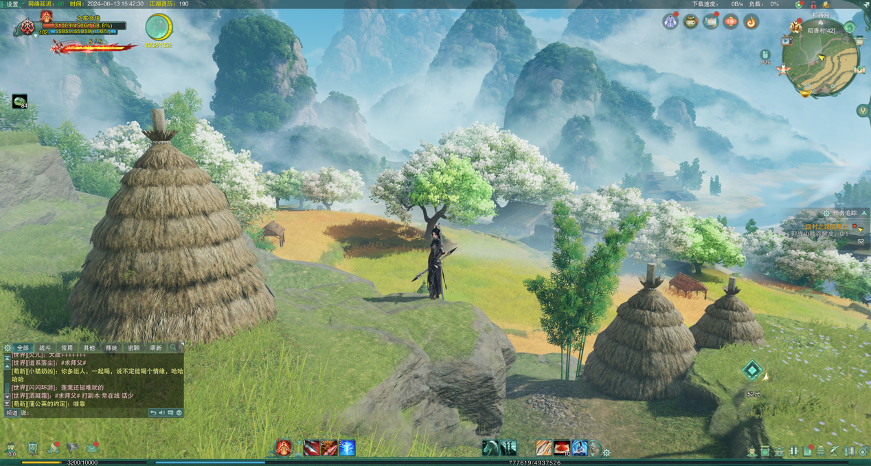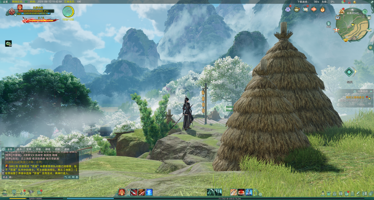 进入游戏后,经过短暂的新手任务,就来到了风景秀丽的“稻香村”。