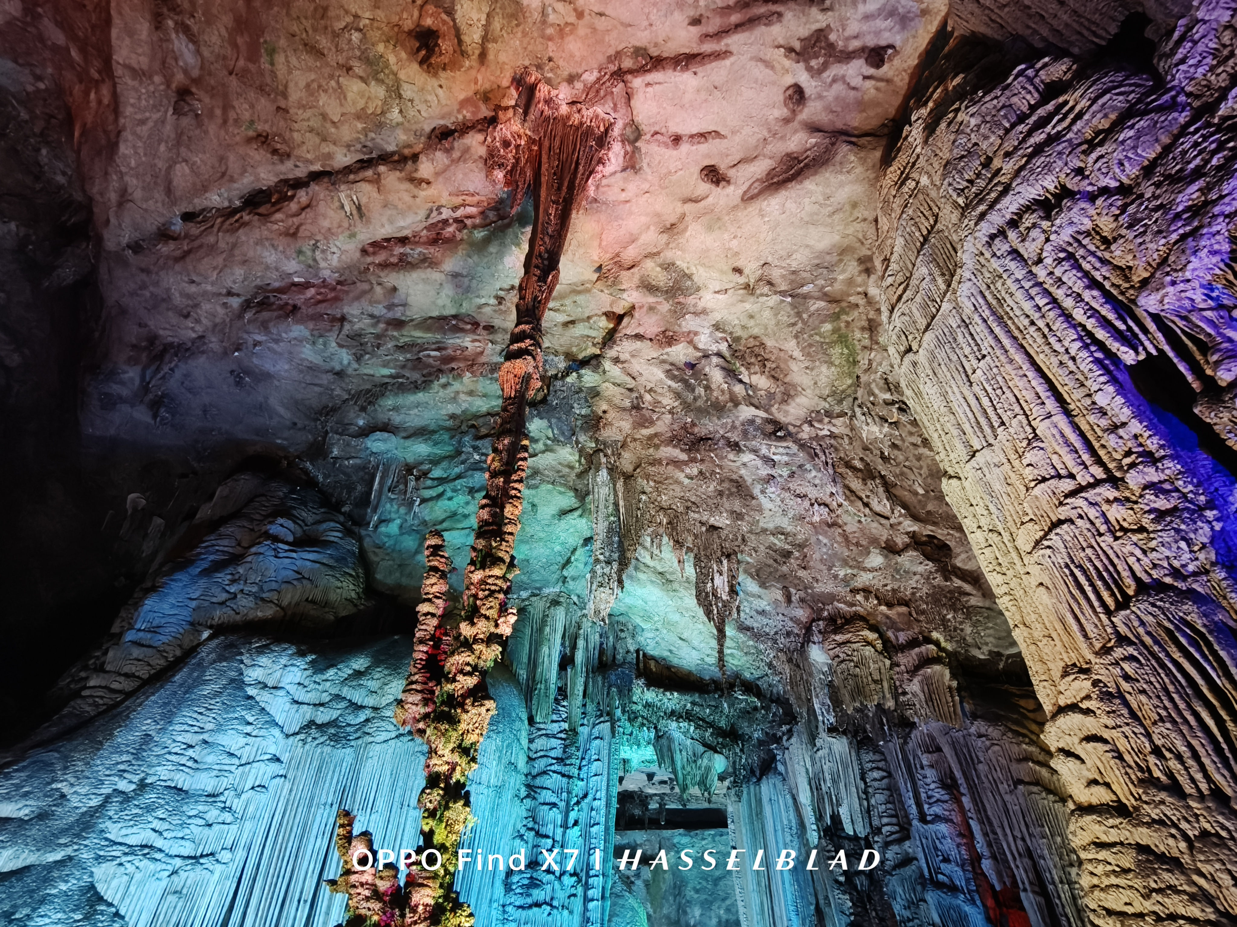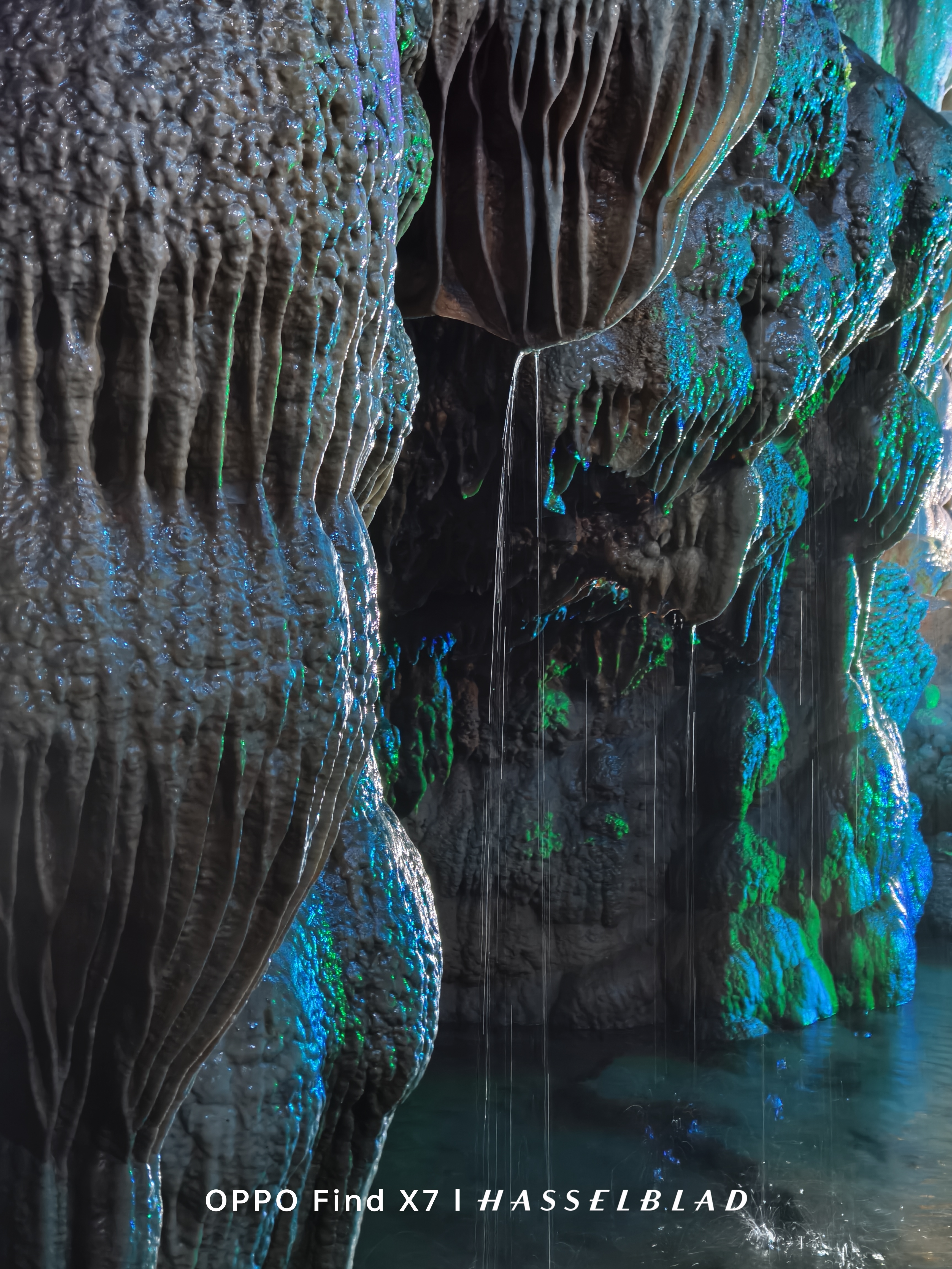 搭载天玑 9300 的 OPPO Find X7 凭借全新超光影三主摄系统,包括 5000 万像素超光感大底广角、6400 万超光感潜望长焦和 5000 万像素的超广角,无论是宽广的溶洞全景还是银子岩内部细腻的岩壁纹理,都能被清晰捕捉。其出色的明暗处理能力,使得摄影创作者在光影交错的环境中也能轻松驾驭,让银子岩的壮丽景色得以完美呈现。