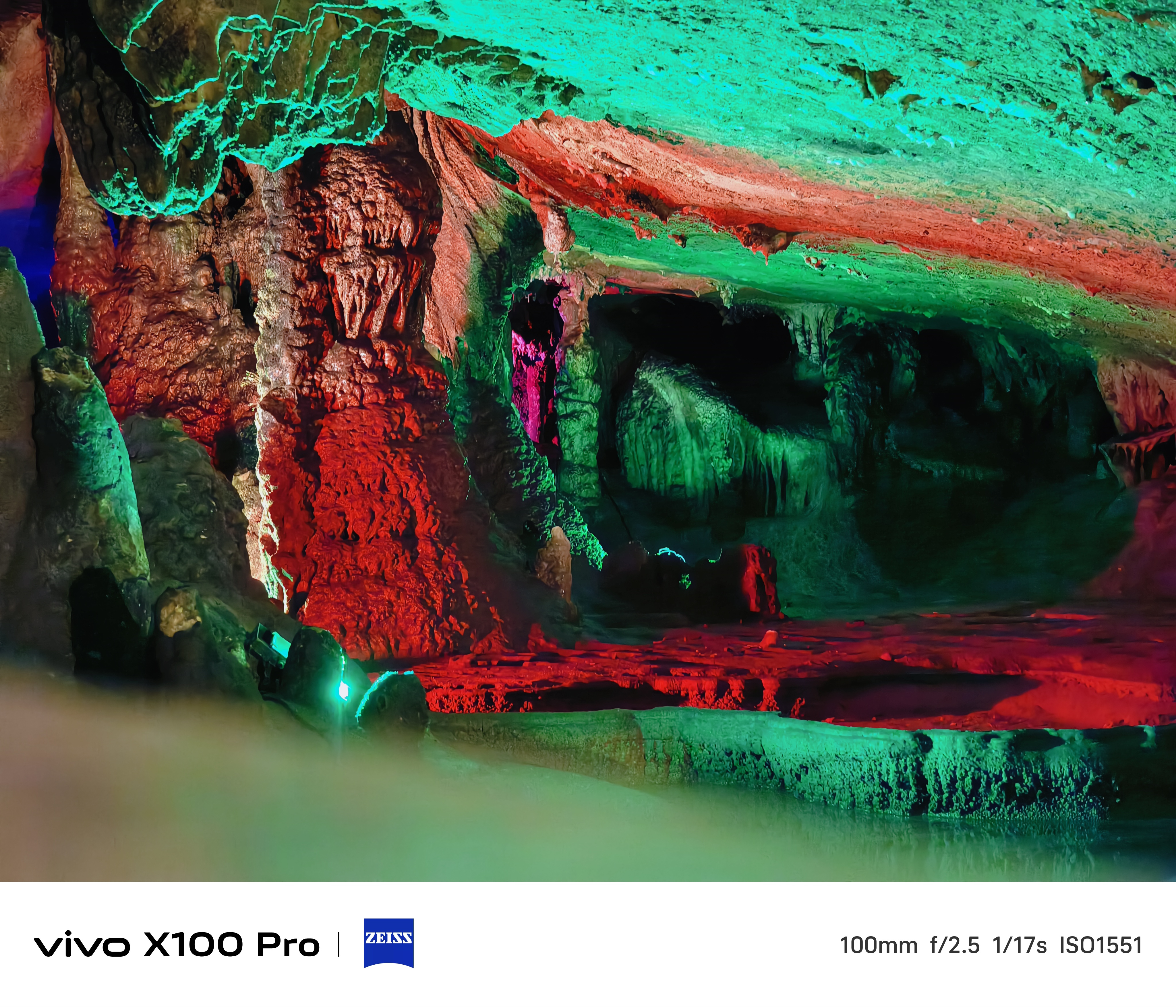 vivo X100 Pro 同样不遑多让,其后置的 5000 万像素主摄、5000 万像素广角以及 5000 万像素潜望镜头组合,结合自研影像芯片 V3 和蔡司 APO 超级长焦镜头、原像引擎的加持,无论是银子岩中熠熠生辉的钟乳石,还是岩壁上流淌的涓涓细流,都能以细腻的色彩和真实的影调被捕捉下来。