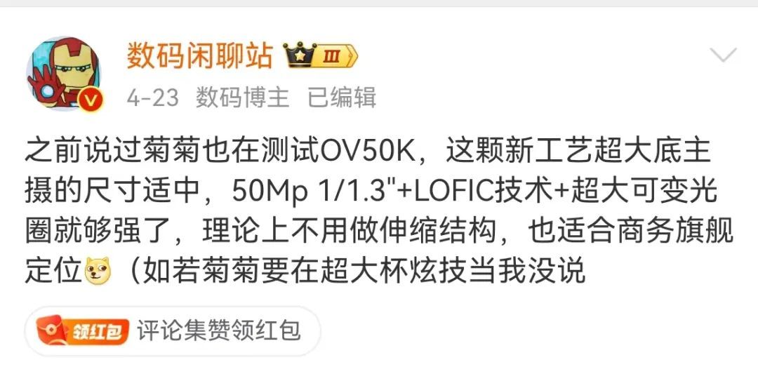OV50K 是如今机圈的香饽饽,被多家厂商采购,是当下国产最强量产主摄。