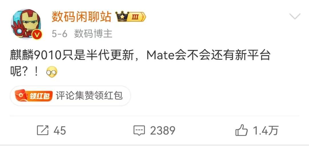 先前,微博博主就曾发布过一条意味深长的博文:麒麟 9010 只是半代更新,Mate 会不会还有新平台呢?