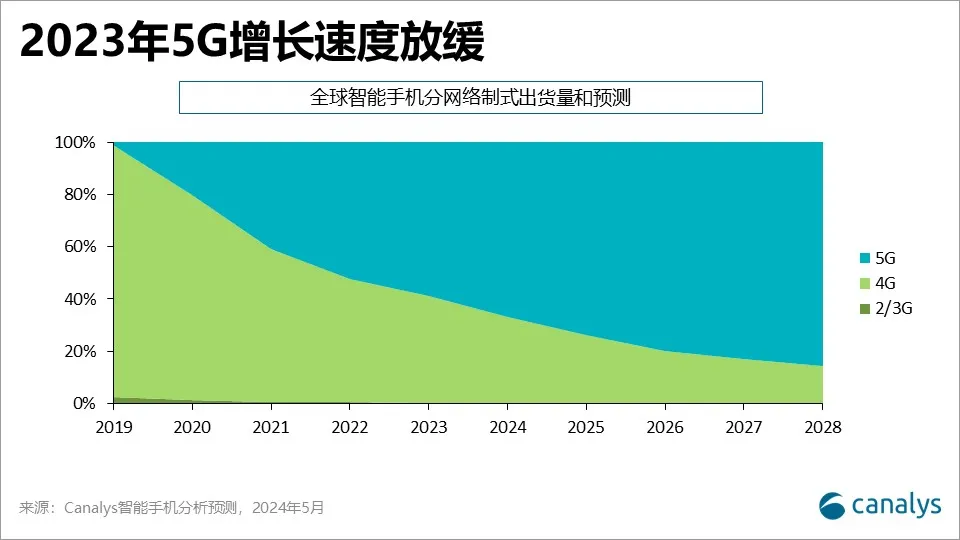 自从 2022 年 5G 智能手机出货量占比超过 50% 以来,渗透率出现放缓。从世界各地区来看,5G 的发展仍然不均衡。