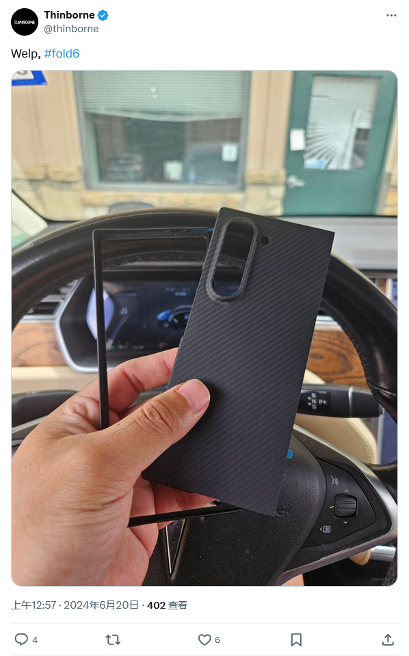 IT之家 6 月 20 日消息,美国手机保护套厂商 Thinborne 今天发布推文,分享了一张保护套照片,文字描述中附有“#fold6”的话题标签,暗示这是适用于三星 Galaxy Z Fold6 的手机壳。