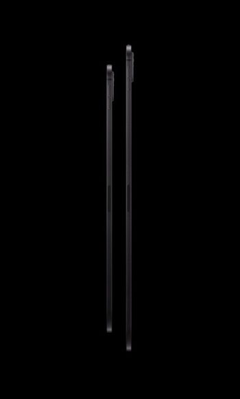 此次iPad Pro同样拥有11英寸和13英寸两种尺寸,厚度分别仅有5.3mm和5.1mm(没错,13英寸版本更薄),更轻更薄。全新iPad Pro提供银色和深空黑色两种可选外观,外壳均由100%再生铝金属打造。