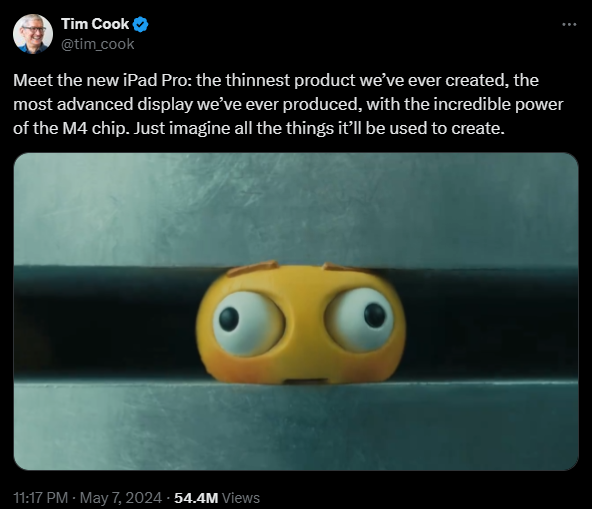 为了宣传新品,苹果还发布了一条名为《Crush》的全新iPad Pro广告视频,但广告播出后却遭到广泛批评。
