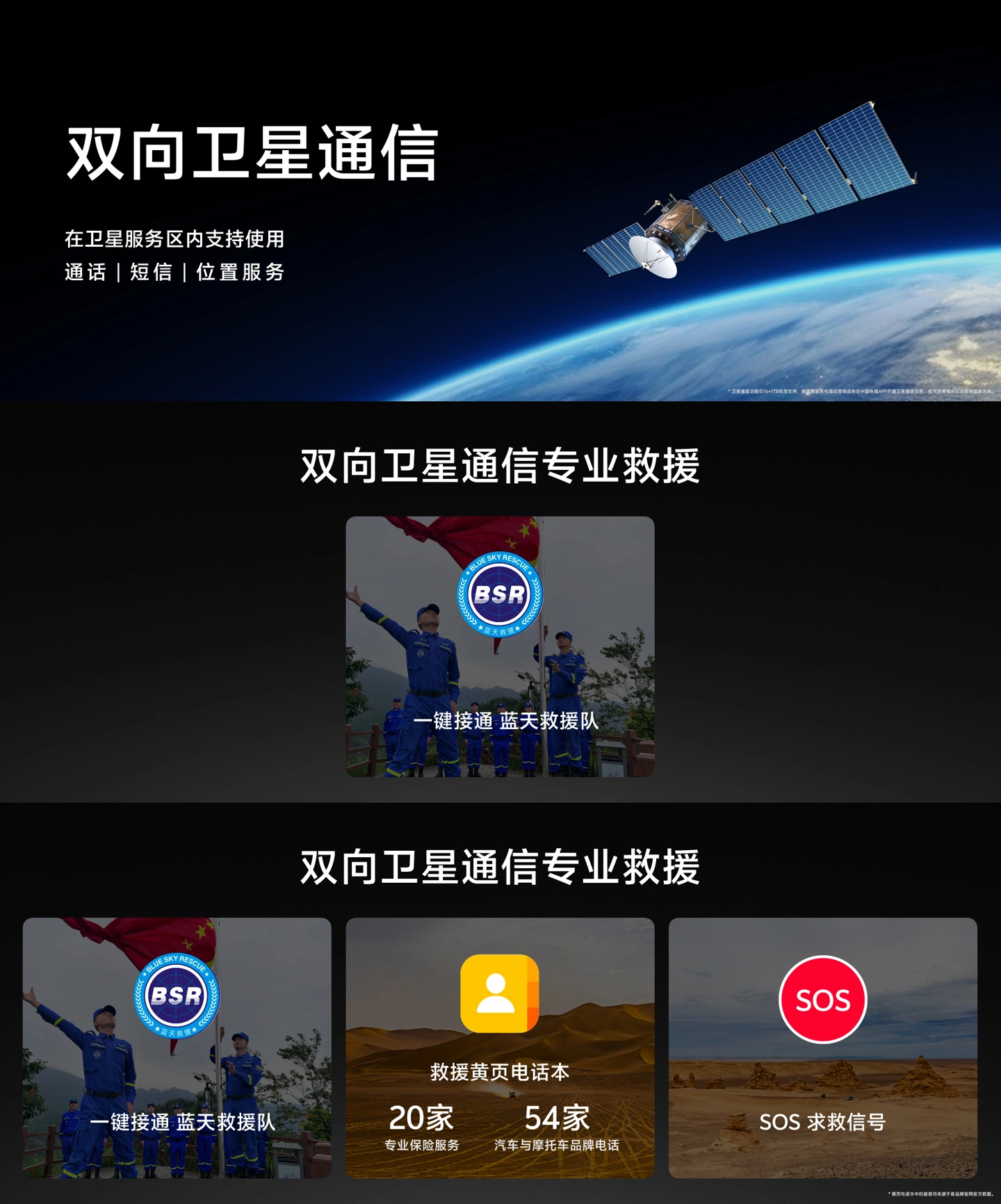 vivo X100 Ultra 支持双向卫星通信,提供一键专业救援模式,一键接通蓝天救援队,还有救援黄页电话本,快速检索一键呼出。