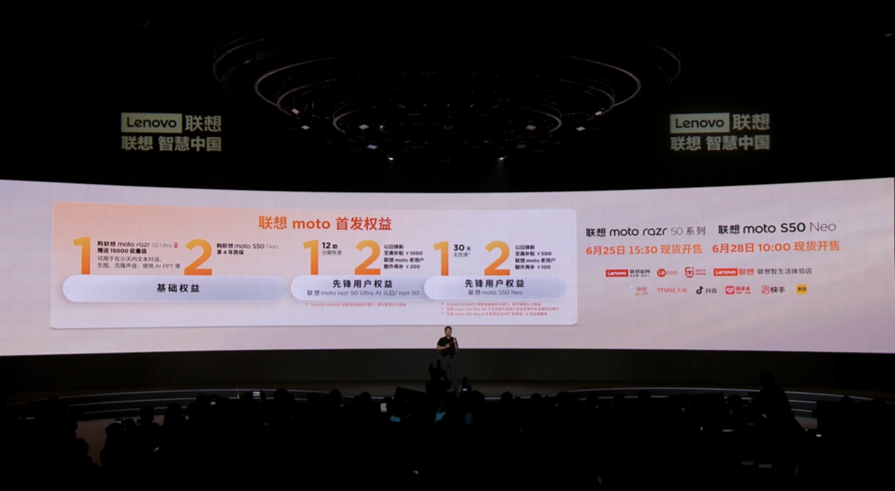 IT之家 6 月 25 日消息,在今天的联想发布会中,摩托罗拉 moto S50 Neo 手机正式发布,这款手机主打“5000 毫安时电池”,搭载高通骁龙 6s Gen 3 处理器,将于 6 月 28 日 10:00 开售,IT之家整理价格信息如下: