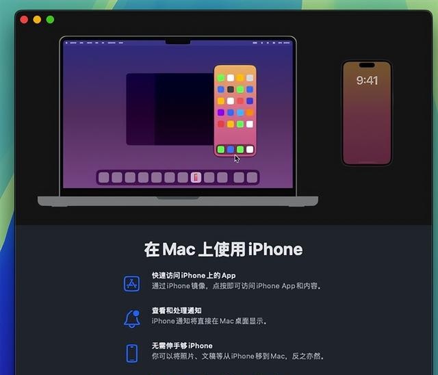 据了解,iPhone镜像可以让Mac用户将iPhone屏幕镜像到Mac上,可以在Mac直接回复iPhone上的消息、接收通知,甚至进行无缝拖放操作,实现跨设备的同步体验。