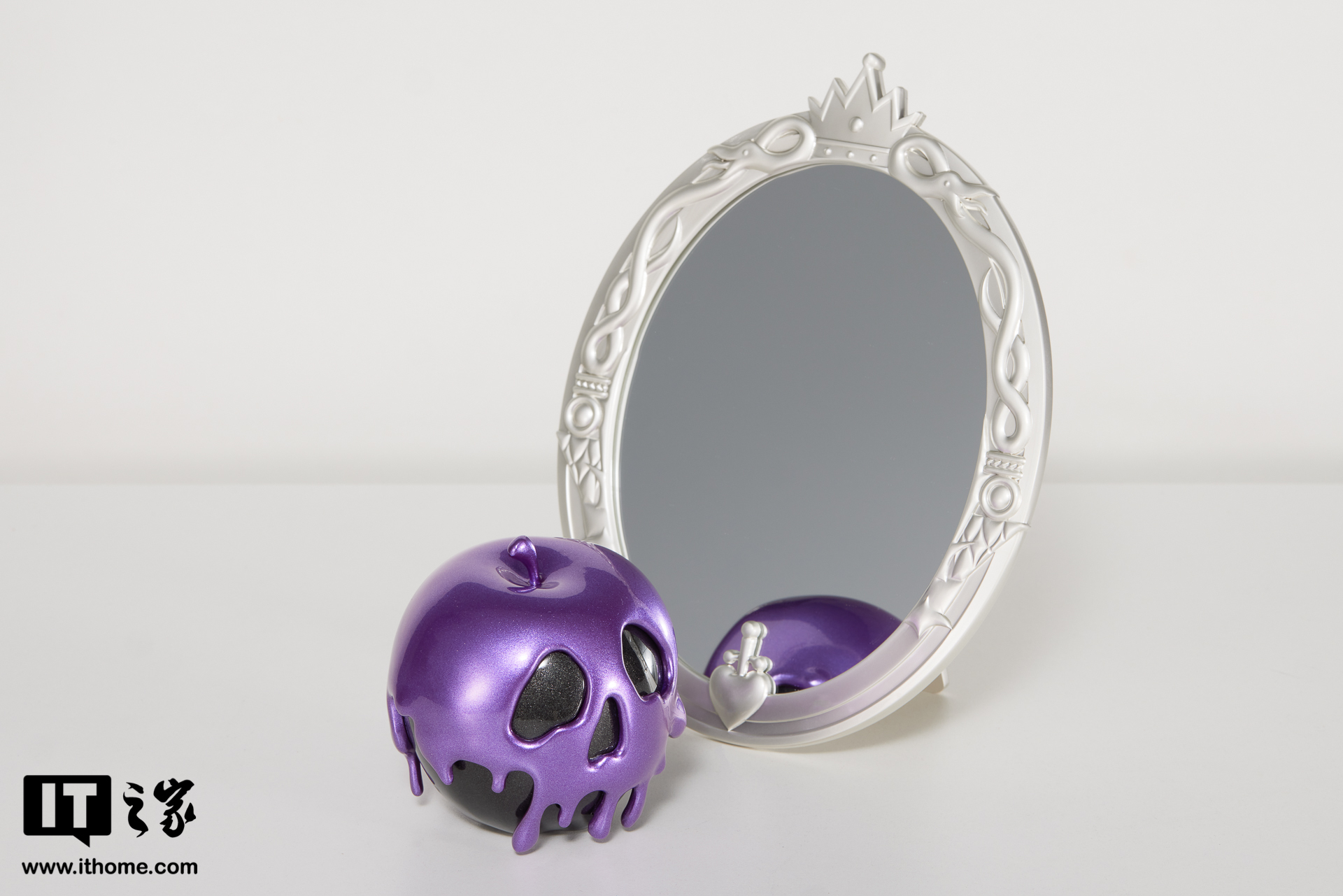 简单介绍一下这次邀请函内容,外观是硕大的方形紫盒子,色泽深邃且富有神秘感。打开盒子后,内含有一个紫色的限定版毒苹果,以及一枚镜子。毒苹果与魔镜的结合,不禁联想起白雪公主的经典故事。