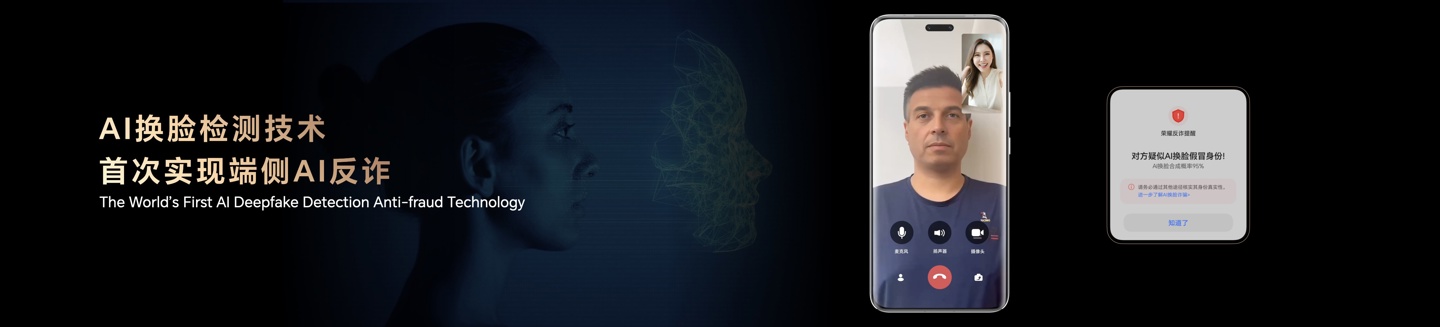在四层 AI 战略架构的创新引领下,此次 MWC 上海展会上荣耀向业界展示了两大最新端侧 AI 技术:AI 离焦护眼和 AI 换脸检测。