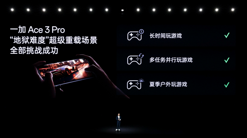 满足日常应用场景之外,一加 Ace 3 Pro 彻底释放性能潜力,挑战行业从未有人做到的超级重载场景。在三大堪称“地狱级难度”的超级重载场景中,一加 Ace 3 Pro 可以做到持续玩游戏从满电到关机全程满帧运行,多任务并行玩游戏 1 小时持久满帧,以及 30℃ 高温玩游戏 1 小时全程满帧流畅。一加 Ace 3 Pro 是行业唯一可以满帧征服三大“地狱级难度”重载场景的手机产品,为用户带来前所未有的性能表现,是当之无愧的性能之王。