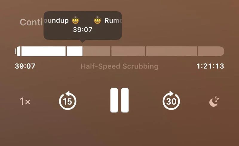IT之家 6 月 27 日消息,网友 Wristnut 反馈称,苹果 iOS 18 播客(Podcasts)应用程序中引入了“章节片段”功能,用户可以灵活根据自己偏好,选择当前播客节目的内容。