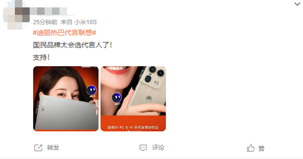 文章来源于互联网:快科技-联想全线预热新代言人迪丽热巴!网友点赞:国民品牌太会选