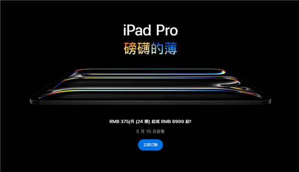 快科技5月15日消息,今日,苹果全新iPad Pro正式开售,提供11英寸、13英寸两种尺寸,起售价分别为8999元和11499元。