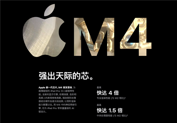 作为苹果史上性能最强的平板,全新iPad Pro首发搭载苹果自研M4芯片。