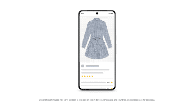 很快,TalkBack 将利用 Gemini Nano 为弱视和盲人用户创建物体的听觉描述。例如,TalkBack 可能会这样描述一件衣服:“黑白格子连衣裙的特写。这件衣服很短,有领子和长袖。腰间系着一个大蝴蝶结。”