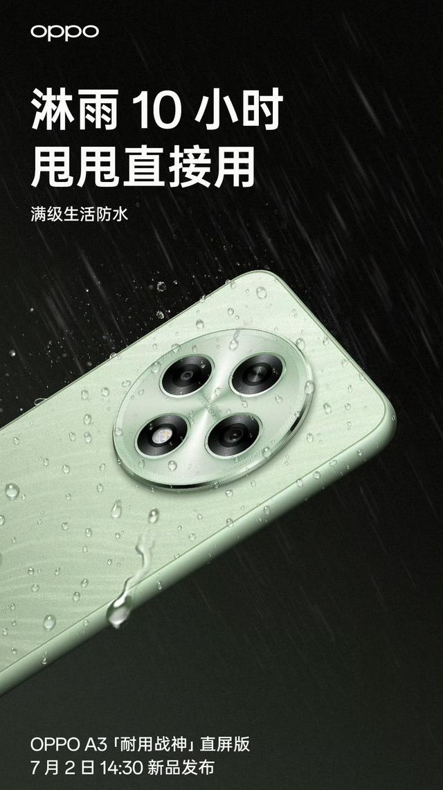 文章来源于互联网:凤凰网-首发油手触控、升级IP65,OPPO A3“耐用战神直屏版”手机预热