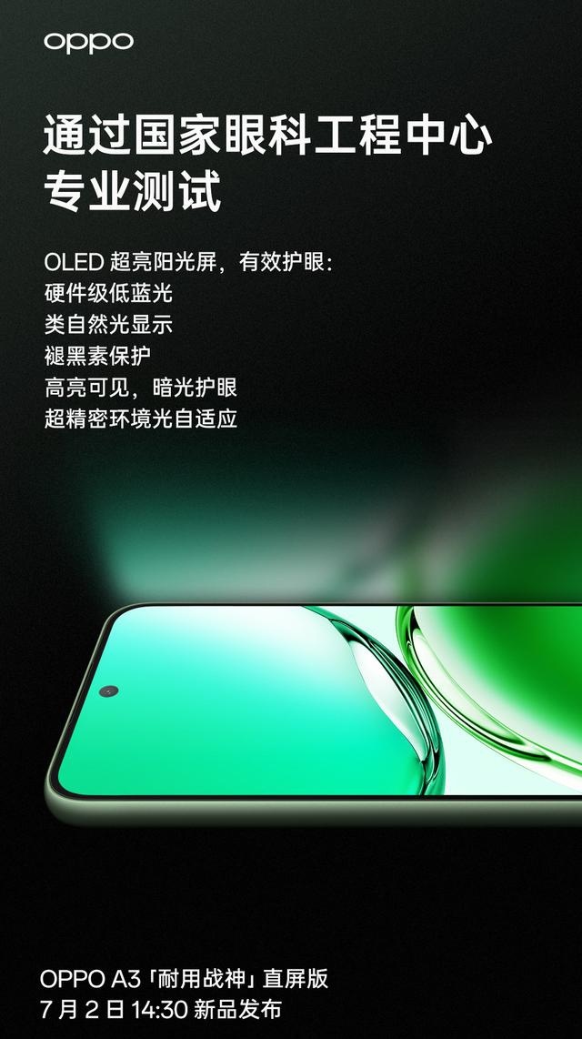 IT之家 7 月 1 日消息,OPPO 将于 7 月 2 日 14:30 发布 OPPO A3 手机,官方今日公布了该手机更多配置信息。