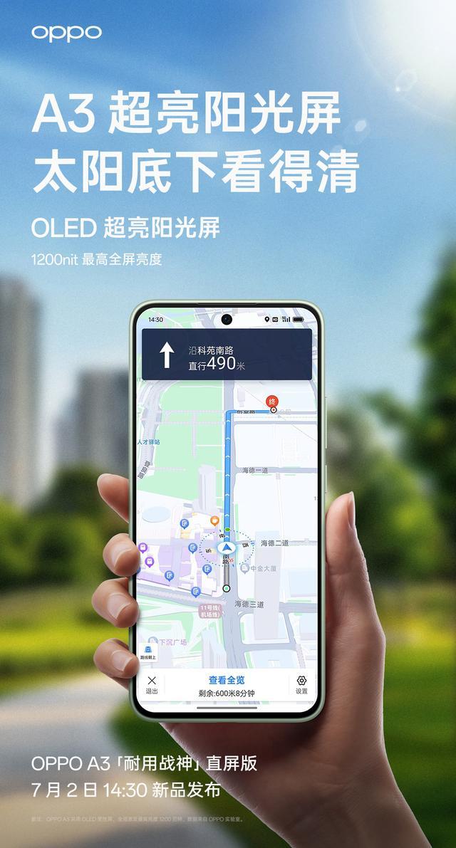 文章来源于互联网:凤凰网-OPPO A3手机直屏版预热:1200nit“OLED阳光屏”、支持耐高温特性
