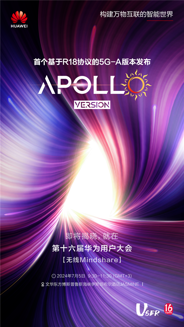 官方预热海报显示,Apollo Version是首个基于R18协议的5G-A版本。