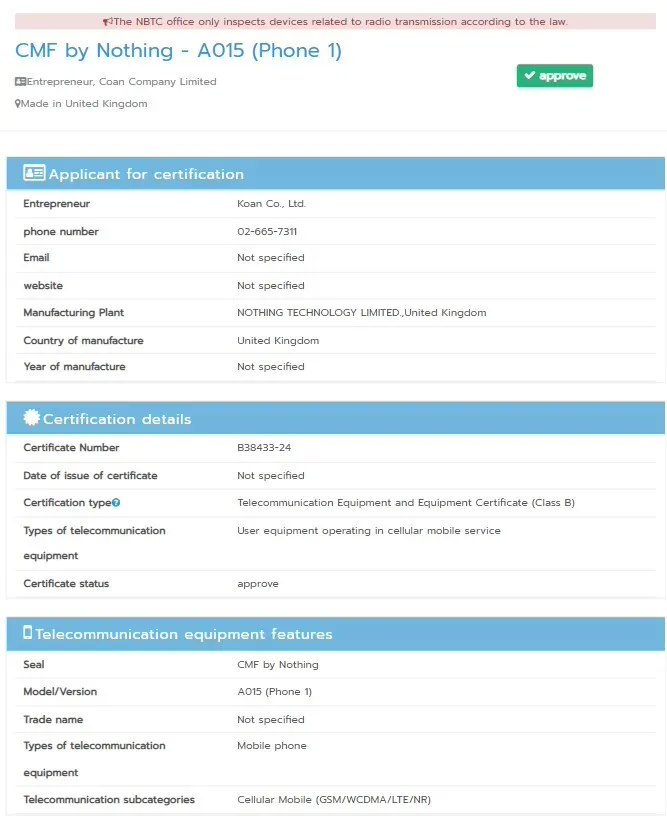 除此之外,这款机型还通过了印度 NBTC 认证,确认支持 5G 网络。