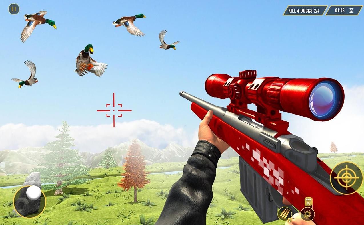 《Sniper Shooting Duck Fps Games》是一款结合了第一人称射击(FPS)与狩猎元素的3D游戏。玩家将扮演一名专业的狙击手,在丛林、河流等多样化的环境中,利用现代狙击枪精准射击飞翔的鸭子。游戏不仅考验玩家的射击技巧,还注重时间管理和策略规划。本文将详细介绍游戏的玩法及攻略,帮助新手玩家快速上手。