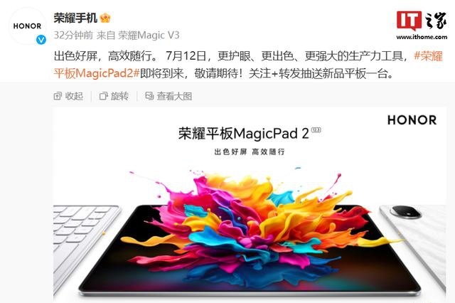 文章来源于互联网:凤凰网-荣耀MagicPad 2平板外观公布:圆形镜头模组、纯白键盘配件