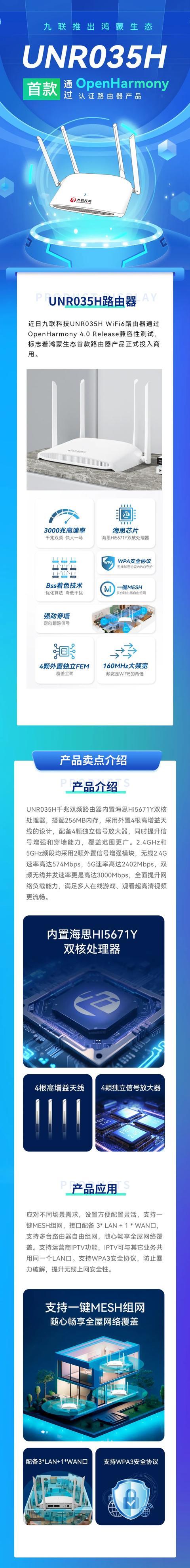 文章来源于互联网:凤凰网-首款鸿蒙生态路由器开启商用:九联发布UNR035H千兆双频路由器