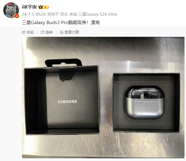 三星Galaxy Buds3 Pro耳机真机现身:银灰色金属质感,7月10日发布