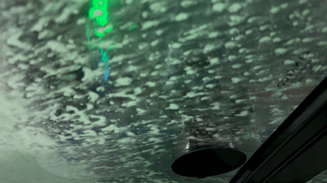 把手机固定在车上,然后开到自动洗车机里,用洗车机的高压水柱、碱性洗涤剂和鼓风机给手机也「洗个澡」。考虑到手机正面开口更多,在高压水柱下更容易出问题,所以三款手机都用手机支架固定在车顶。CAT S22 Flip 因为尺寸问题,手机支架夹不住,所以翻开盖子使用大力胶固定。三台手机分别进行测试,每台手机测试两次。