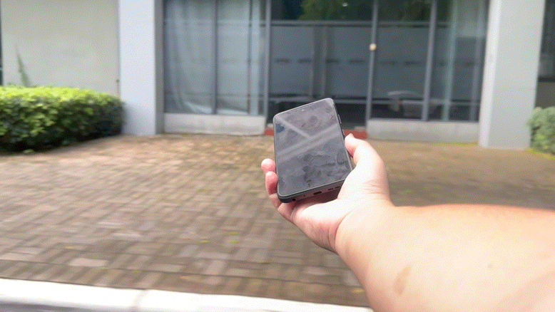 考虑到测试的安全性,汽车速度限制定在了 30 公里每小时,手机也用的「释放」而不是抛出。整个测试在园区道路内进行,前后有安排同事清场,且驾驶员只负责驾驶,以确保大家的安全性。