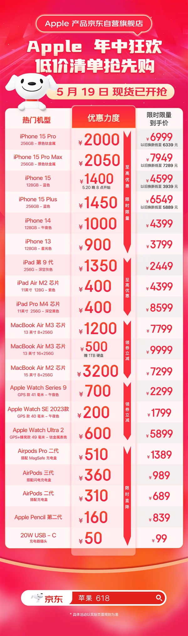 京东自营苹果 618 狂促现已开始,iPhone 16 /Pro 系列、iPad、AirPods 皆为好价:点此查看苹果 618 主会场。 另外京东 618 可领至高 25618 …