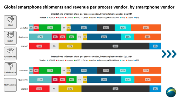 文章来源于互联网:快科技-2024年Q1手机处理器排名:联发科39%份额全球第一 国产紫光展锐增速最快