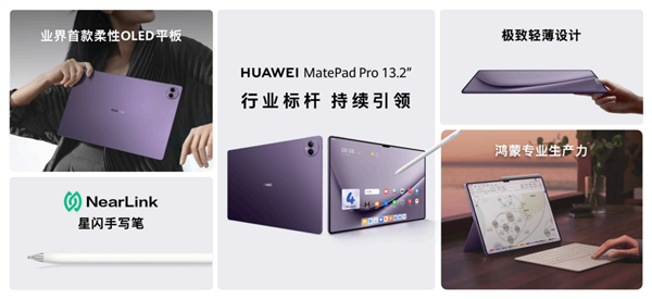 华为MatePad Pro 13.2英寸是华为迄今为止尺寸最大的平板产品,它配备了一块13.2英寸的超大柔性OLED显示屏,搭配极窄的3.4mm边框,实现了高达94%的屏占比,为用户带来了几乎无边界的视觉体验。其3:2的屏幕比例接近传统画板的形状,为艺术创作提供了更为自由的空间。