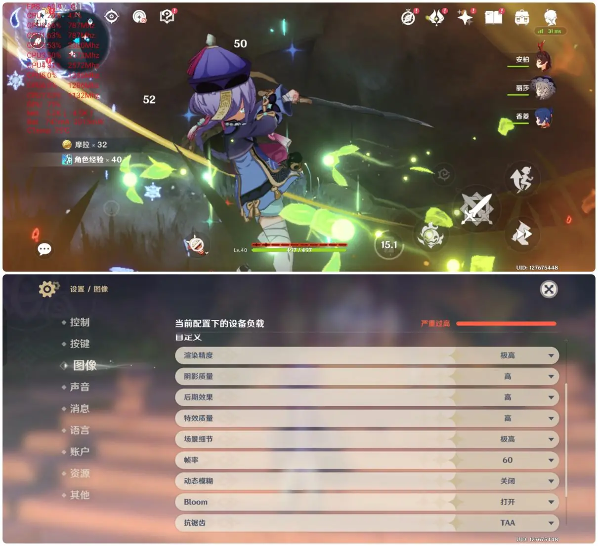 老规矩,依旧是 30 分钟的最高画质《原神》实测,测试场景选择须弥城跑图 + 打怪,战斗场景占游戏总时长 50% 上下。