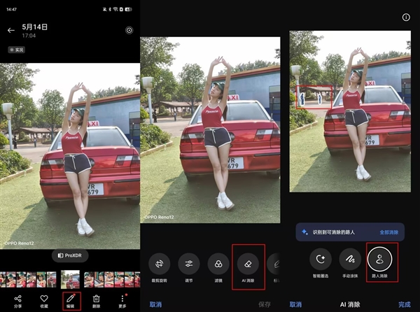 OPPO的AI消除相信大家已经不陌生了,早在Find系列上就已经支持,这次的Reno12系列也得到了下放,使得更多的用户能够享受到这项便捷的功能。