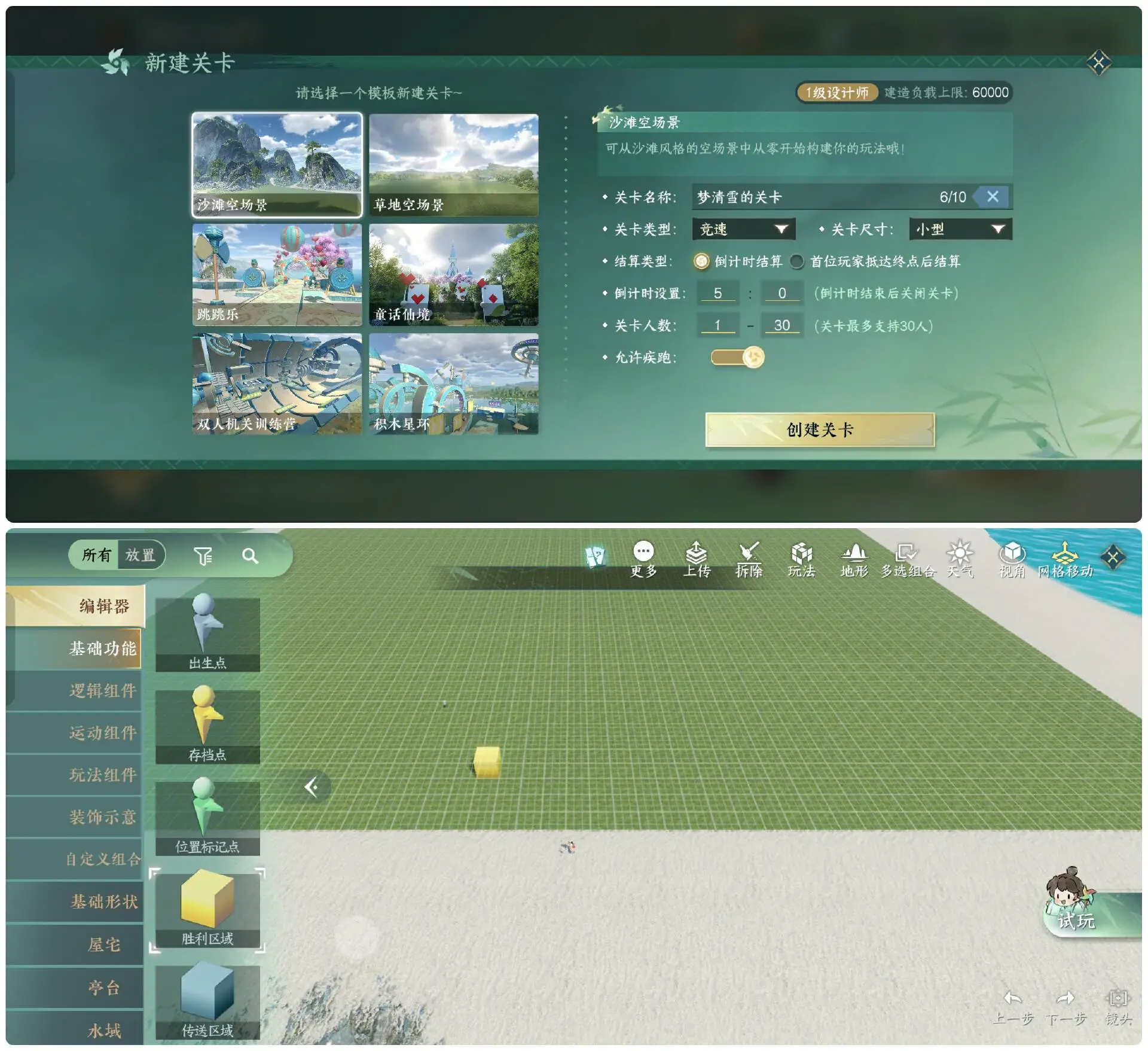 更有趣的是,你甚至可以在此创造又或者是体验逆水寒版的“男生女生向前冲”,将节目中真实的关卡,复刻到游戏之中。