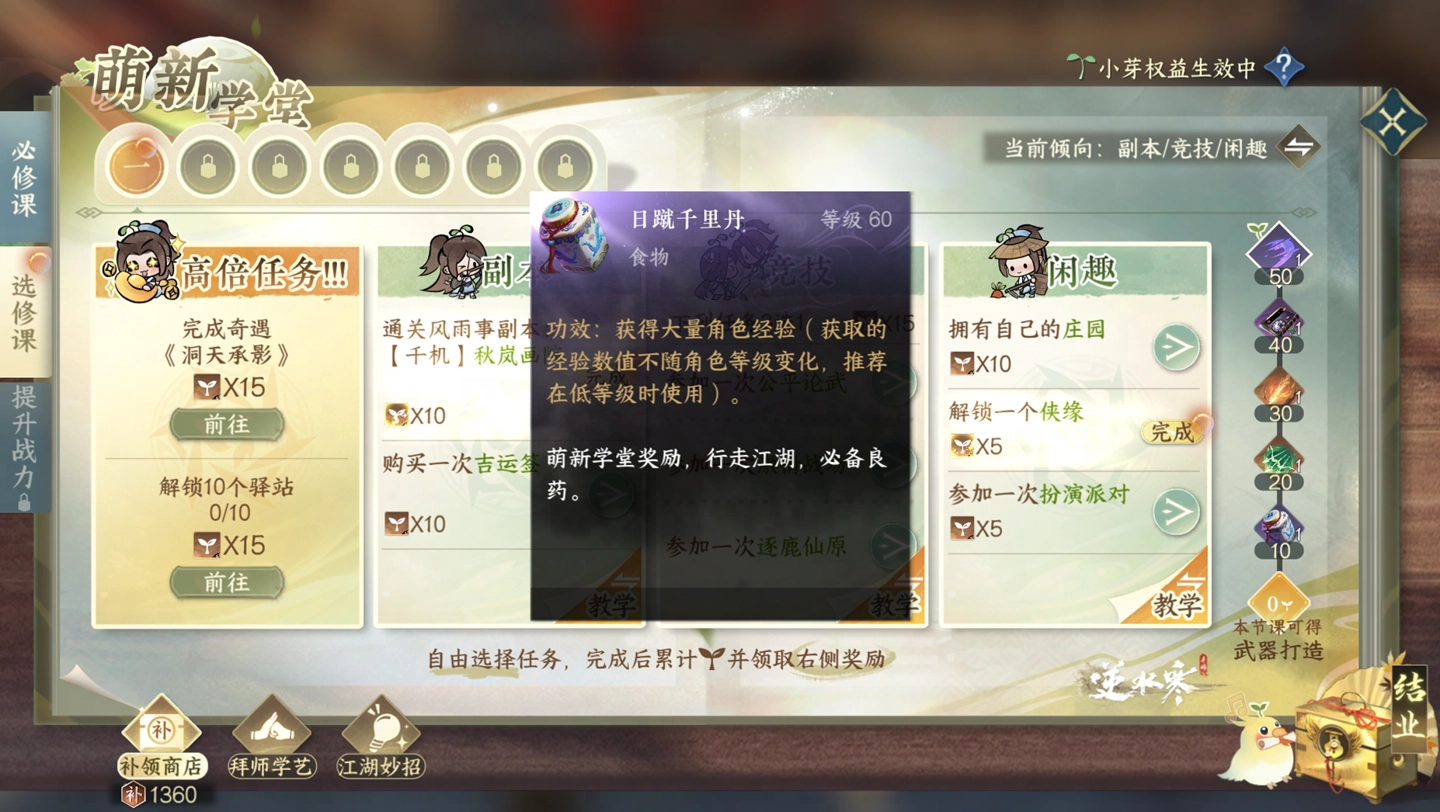 对于新加入的玩家,游戏还提供了《萌新学堂》,可在 1 小时内直升至 70 级,与老玩家同步开始冒险。此外,游戏里还配备了清晰的成长引导系统和个人成长 AI 诊断系统等辅助功能。