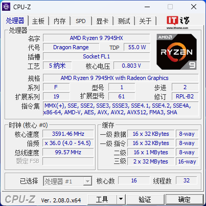 原子侠 G7 Platinum 所搭载的锐龙 9 7945HX 处理器采用台积电 5nm FinFET 工艺,Zen4 核心架构,拥有 16 核心 32 线程,最大时钟加速频率可达 5.4GHz,三级缓存达到了 64MB,是一款游戏玩家喜闻乐见的高性能处理器。