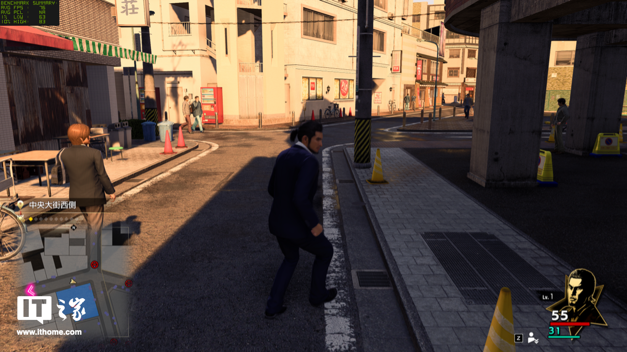 然后是 2 款光追游戏,在今年推出日式 RPG《如龙 8》中,以 2K 分辨率加最高画质运行游戏,并采用 Frame View 抓取游戏数据,此时游戏平均帧数来到了 76 帧,1% Low 帧为 63 帧。
