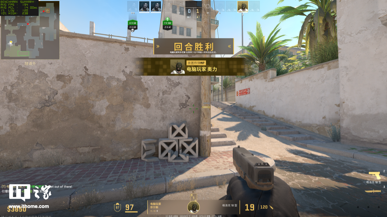 既然原子侠 G7 Platinum 定位是游戏迷你主机,游戏表现自然是最重要的。IT之家这次选取 5 款游戏进行实测。首先是在线竞技游戏的代表《CS2》,以 2K 分辨率默认高画质运行游戏,游戏平均帧数达到了 419 帧,1% Low 帧为 120 帧,平均延迟则是 14ms。