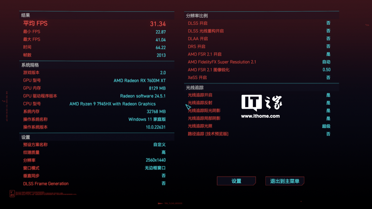 随后我们切换到超级光追画质,游戏帧率则是下降到了 31 帧,不是很顺畅。