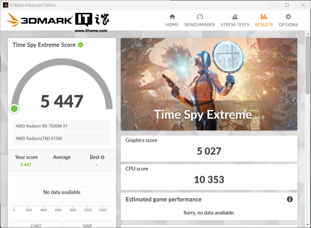 在 3D Mark 的测试中,基于 DX12 的 Time Spy Extreme 项目原子侠 G7 Platinum 得到了 5027 分的显卡分数,与 RTX4060 基本保持一致。
